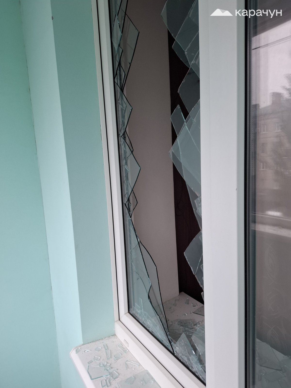 Журналіст Карачуна днями побував у восьмому під’їзді. Враження — вкрай гнітюче: всюди сирість, холод, бруд. Біля під’їзду — залишки потрощеного будівельного сміття і пошкоджені автомобілі. За відсутності даху і покрівлі, під час дощів вода тече просто по стінах деяких квартир.