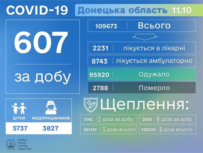 За понеділок, 11 жовтня, в області виявлено ще 607 хворих.