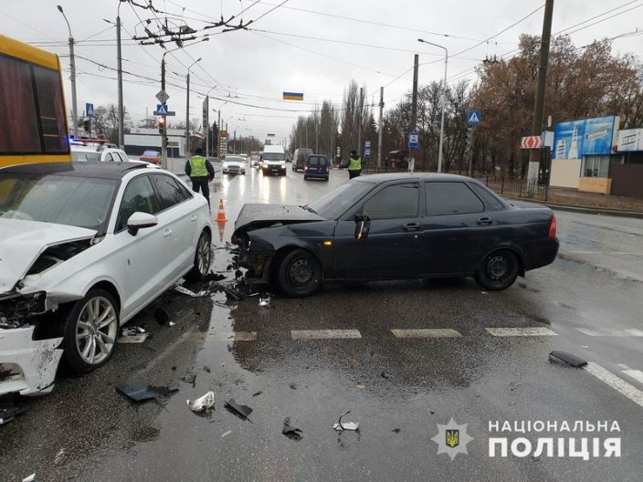 Перша дорожньо-транспортна подія трапилась у суботу близько дванадцятої дня. На вулиці О. Тихого 25-річний мешканець Краматорська на автомобілі ВАЗ виїхав на зустрічну смугу на перехресті та скоїв зіткнення із автомобілем Audi. Внаслідок аварії постраждала 38-річна жінка, що знаходилась за кермом другого транспортного засобу.