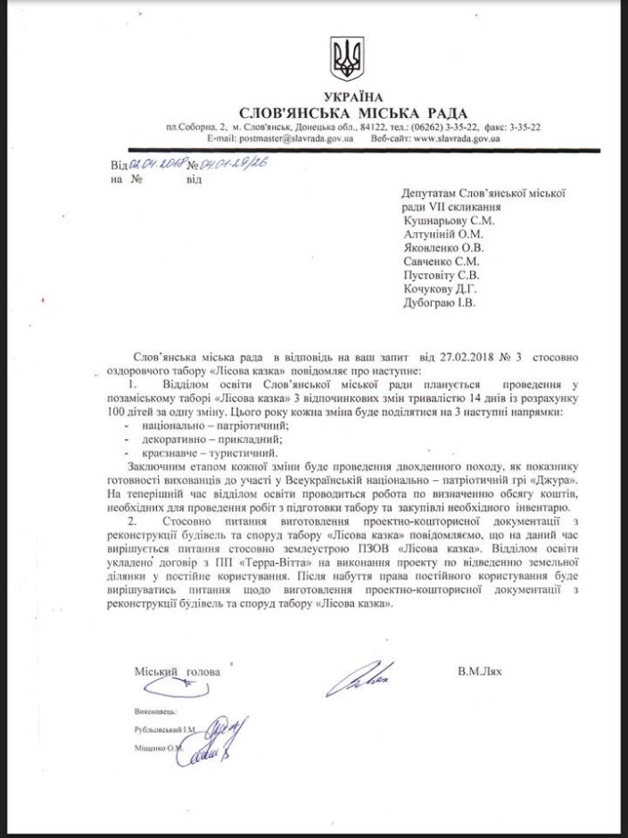 Вчера вечером депутат Славянского городского совета Ольга Алтунина опубликовала информацию о том, как в дальнейшем будет использоваться лагерь "Лесная сказка" в Святогорске.