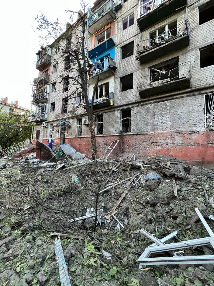 Наслідки нічного ракетного удару по центру Краматорська.