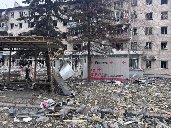 В результаті удару були зруйновані торгові павільйони по вулиці Івана Мазепи, а також двоповерхова будівля.