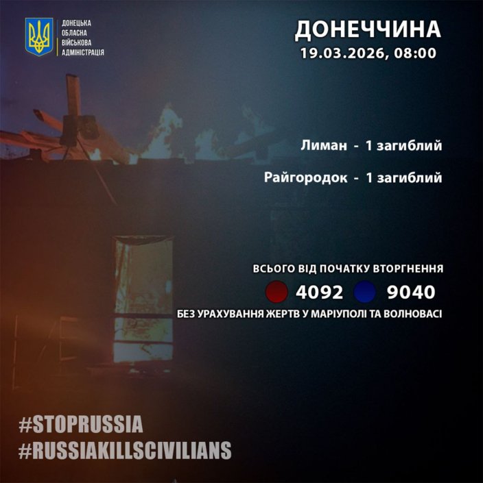 За 18 березня росіяни вбили 2 жителів Донеччини: у Лимані та Райгородку.