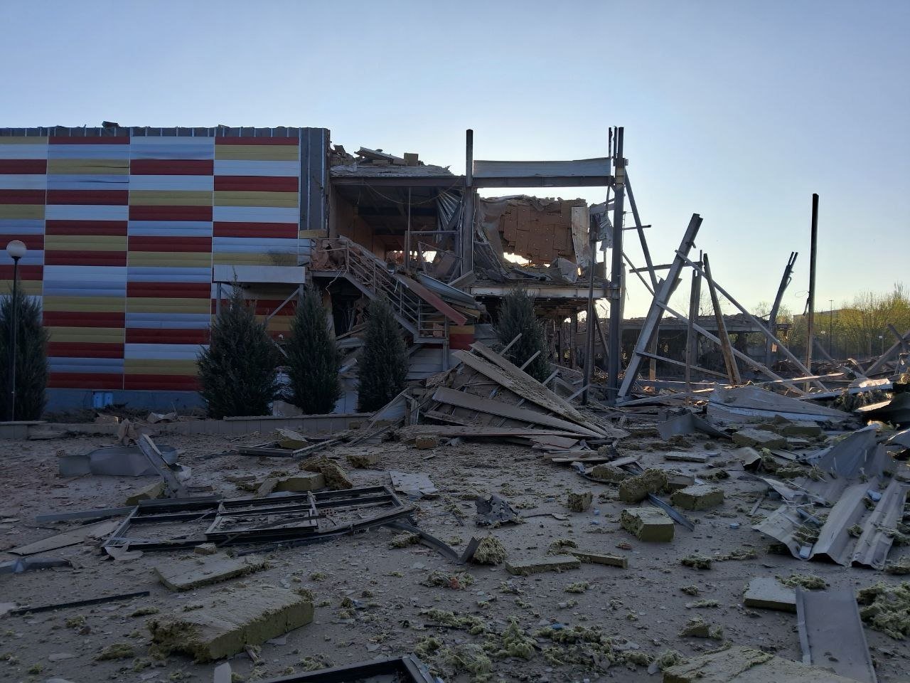 На фото видно, що в Миколаївці зруйновано спортивний комплекс «Енергетик».