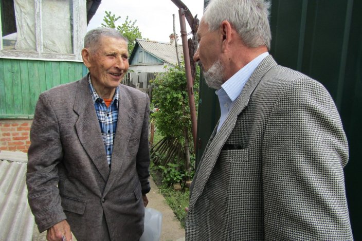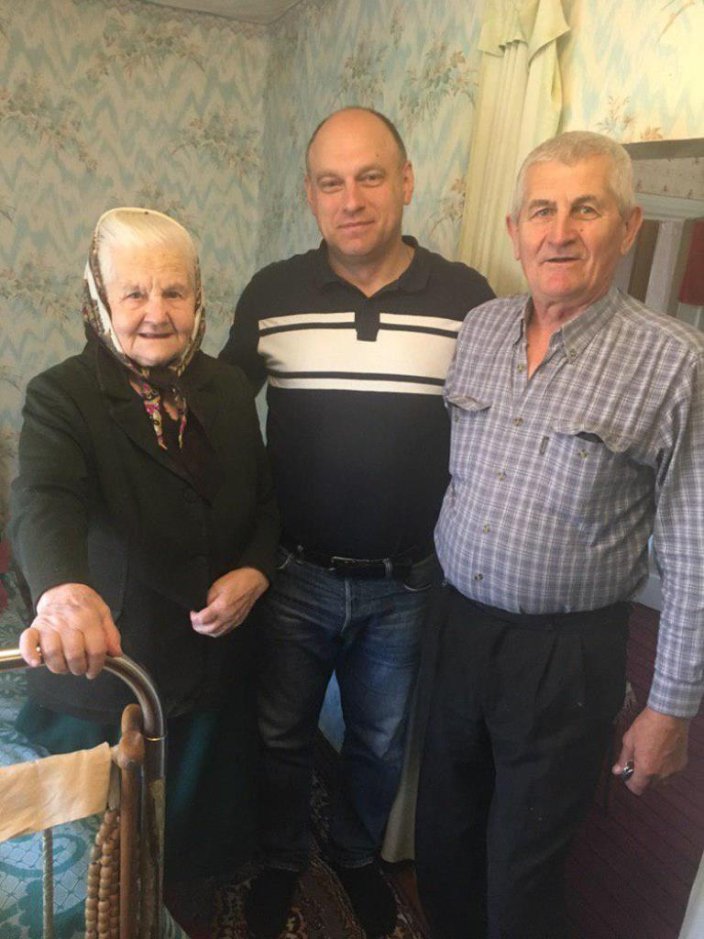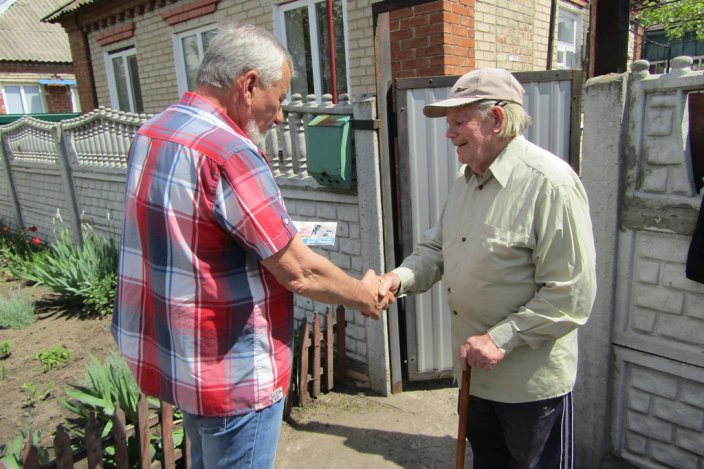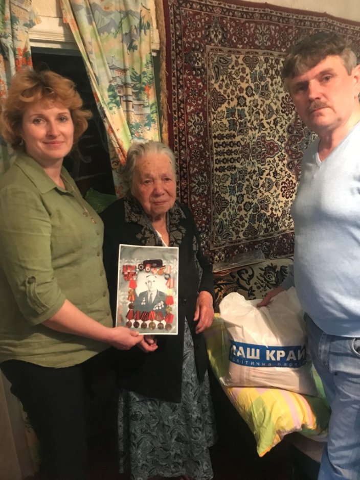Искренние слова благодарности, теплые пожелания и приятные подарки ветераны принимают с радостью, ведь, что нужно тем, кому далеко за 90…Лишь забота, внимание и доброе слово. Несмотря на преклонный возраст, память не стерла отпечатков войны. Каждый принимал поздравления со слезами на глазах, делился самыми наболевшими воспоминаниями из военных и послевоенных годов жизни. Лидия Синяева (96 лет) на фронте работала в военно-санитарном поезде и во время его бомбежки была контужена. Сама родом со Сталинградской области, в госпитале познакомилась с будущим мужем Петром Ефремовичем Синяевым, а в 1945 году пара поженилась. Супруг на фронте был майором, получил многочисленные ранения. После завершения военных действий, вместе с супругой Лидой переехали в Славянск, 25 лет проработал судьей в городе. Супруга же из-за полученного ранения большее время не работала. Сейчас, когда мужа не стало, доживает старость с сыном.