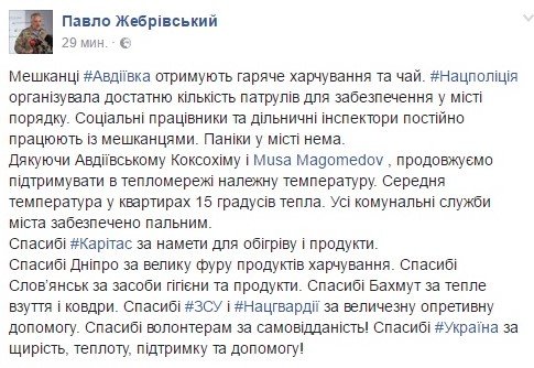 Головна Новини регіону Из Авдеевки благодарят Славянск Категорія Новини регіону Дата публікації 31 січня 14:24, 2017 Кількість переглядів 2 Из Авдеевки благодарят Славянск ГригорійКульбака поширити у Facebook поширити у Telegram поширити у Twitter Наш город оказался в числе небезразличных... Председатель Донецкой областной ОВГА Павел Жебривский на своей странице в Фейсбуке описал нынешнюю ситуацию в Авдеевке и высказал благодарность всем, кто пришёл на помощь. Славянск оказался в числе небезразличных... Більше новин Категорія Новини регіону Дата публікації 17 грудня 20:07 Під Лиманом росіяни кидають у бій сотні штурмовиків Категорія Новини регіону Дата публікації 16 грудня 20:50 DeepState: Ворог окупував Серебрянку та просунувся в Сіверську і Переїзному на Донеччині Категорія Новини регіону Дата публікації 16 грудня 20:03 У Святогірську закривається останнє відділення Нової пошти Категорія Новини регіону Дата публікації 16 грудня 10:18 У Слов'янську пошкоджено 3 приватні будинки: зведення Категорія Новини регіону Дата публікації 15 грудня 17:46 ⚡️ З Святогірська та сусідніх сіл оголошено примусову евакуацію: кого це стосується Категорія Новини регіону Дата публікації 14 грудня 12:55 У ISW назвали ключову ціль росіян для наступу на Слов’янськ Категорія Новини регіону Дата публікації 11 грудня 09:46 З 14 грудня - новий графік руху поїздів по станції Барвінкове Категорія Новини регіону Дата публікації 09 грудня 09:58 На Донеччині росіяни захопили відразу п'ять населених пунктів — DeepState Категорія Новини регіону Дата публікації 09 грудня 09:55 Росіяни просунулися на лиманському напрямку та розпочали застосовувати тут бронетехніку Категорія Новини регіону Дата публікації 27 листопада 15:27 Росіяни намагаються закріпитися на околицях ще одного міста в Донецькій області