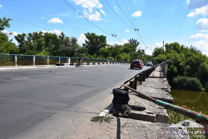 С похожей проблемой пешеходам приходится сталкиваться, когда они идут из центра города на Черевковку. Здесь им нужно пройти по мосту, пешеходная зона которого находится в аварийном состоянии и перекрыта. Что в таком случае делает пешеход? Верно – выходит на проезжую часть и идёт по дороге.