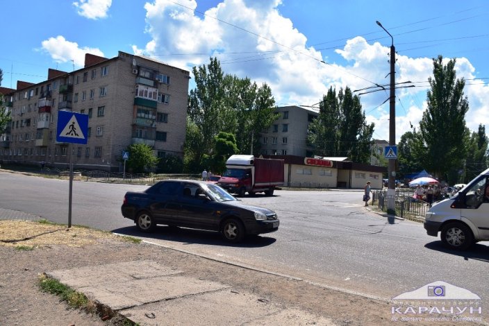 На прошлой неделе журналист «Карачуна» стал свидетелем того, как легковой автомобиль совершил наезд на пешехода. Авария произошла на перекрёстке улиц Ярослава Мудрого и Шевченко. Здесь по улице Ярослава Мудрого через дорогу от бильярдного клуба «Карамболь» есть серьёзные проблемы с тротуаром – он там просто не предусмотрен (см. фото).
