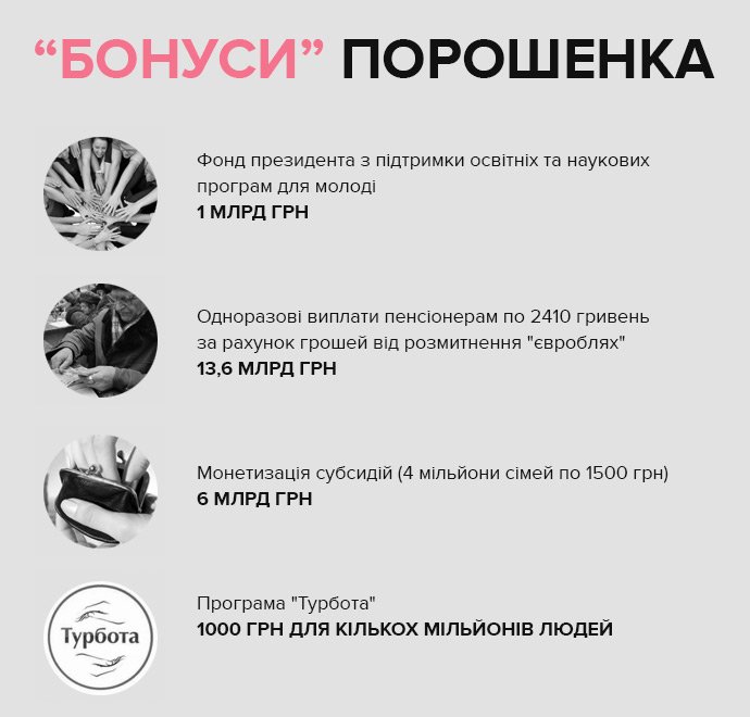 Спробуймо перерахувати бюджетні програми і виплати, які Порошенко активно використовує у своїй піар-кампанії.