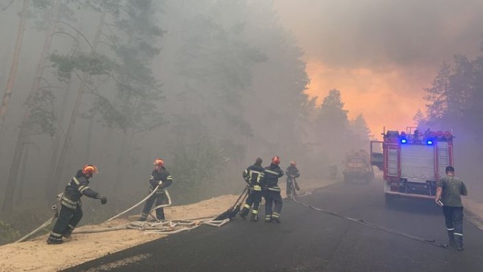 "Утром с секретарем СНБО, председателями ГСЧС, НПУ работаем на месте лесных пожаров возле Северодонецка в оперативном штабе, провели воздушный мониторинг районов возгорания. 24/7 более 1 200 работников ГСЧС, НПУ, НГУ и 200 ед. тех. (2 самолета АН-32П ) ликвидируют пожар", – написал он.