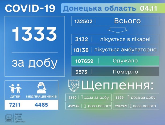 За четвер, 4 листопада, в області виявлено ще 1333 хворих.