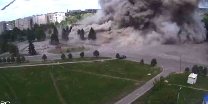 Телеграм-каналы публикуют видео момента удара по ДК в Лозовой.