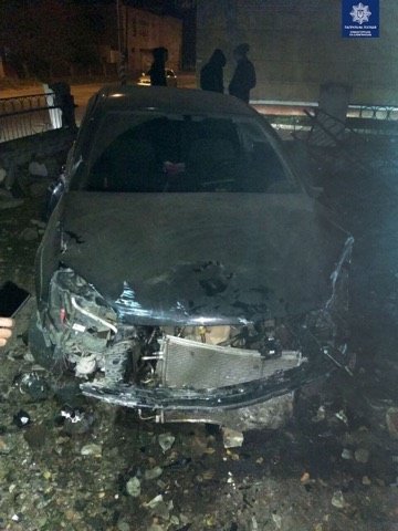 Перескочив через бордюр, зачепив будинок та зніс металевий паркан – такі «здобутки» нетверезого керування.