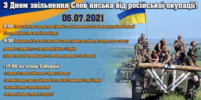 егодня, 5 июля, Славянск отмечает 7 годовщину со дня освобождения от боевиков. Публикуем план мероприятий на сегодняшний день от Славянского городского совета.