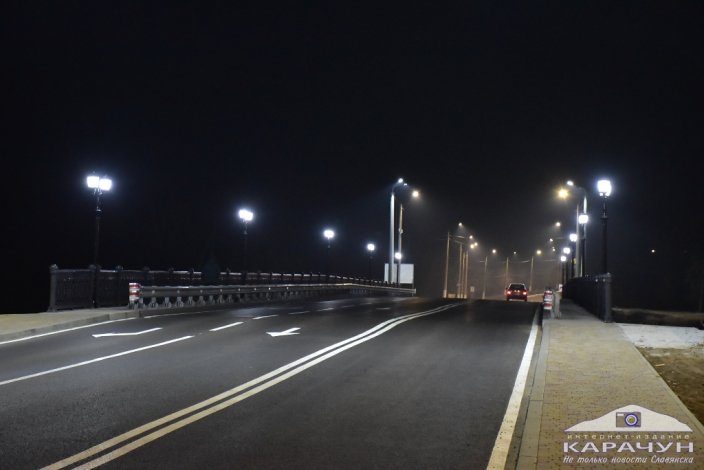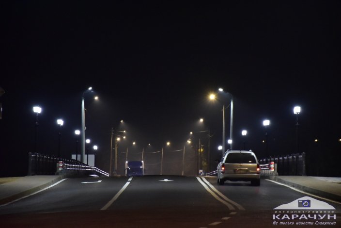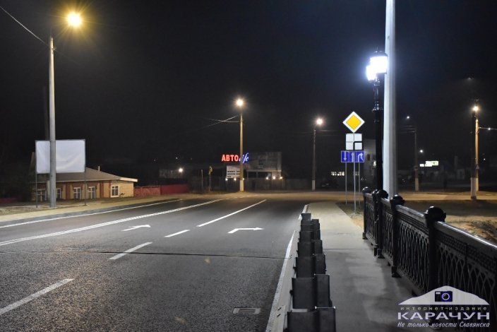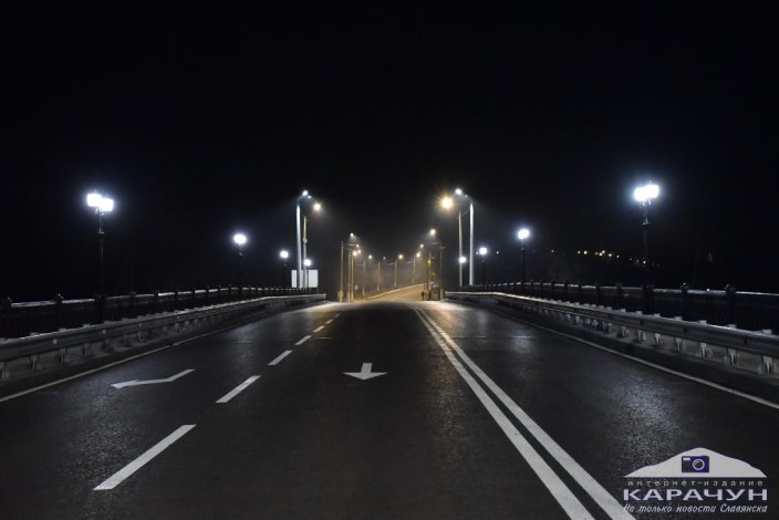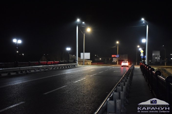 Вчера в Славянске зажгли фонари на обновленном мосту через старое русло Казенного Торца.