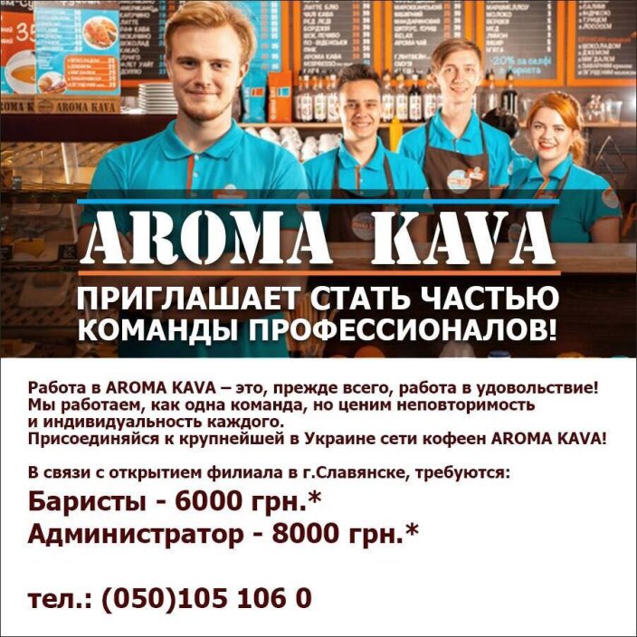Главная Новости Славянска В Славянске готовится к открытию новая кофейня: есть вакансии Категория Новости Славянска Дата публикации 16 марта 11:17, 2018 Кількість переглядів 6 В Славянске готовится к открытию новая кофейня: есть вакансии ГригорійКульбака поширити у Facebook поширити у Telegram поширити у Twitter 6000-8000 гривен + премия В центре Славянска (во дворе дома №22 по улице Центральной) готовится к открытию новая кофейня – AROMA KAVA.В связи с этим объявлен набор персонала с конкурентным уровнем заработной платы. Больше новостей Категория Новости Славянска Дата публикации 09 июня 17:15, 2023 Вниманию читателей интернет-издания «Карачун» Категория Новости Славянска Дата публикации 09 июня 11:03, 2023 Какие банковские отделения и банкоматы на сегодня работают в Славянске Категория Новости Славянска Дата публикации 09 июня 10:06, 2023 Завтра починає діяти літній графік руху поїздів по станції Слов’янськ Категория Новости Славянска Дата публикации 08 июня 15:19, 2023 Робота у Слов'янську: список вакансій Категория Новости Славянска Дата публикации 08 июня 09:57, 2023 Жителька Слов'янська підозрюється у коригуванні вогню по місцях дислокації ЗСУ у місті Категория Новости Славянска Дата публикации 07 июня 17:10, 2023 Суд по делу Нели Штепы отложили на неизвестный срок Категория Новости Славянска Дата публикации 07 июня 16:17, 2023 У Слов’янську водій BMW пропонував 400 доларів поліцейським: ймовірно, був напідпитку Категория Новости Славянска Дата публикации 07 июня 13:53, 2023 Концентрація аміаку у Слов’янську: військова адміністрація повідомила результати проб повітря Категория Новости Славянска Дата публикации 07 июня 13:19, 2023 У Слов’янську збільшується кількість рейсів тролейбусів Категория Новости Славянска Дата публикации 05 июня 11:56, 2023 В автопарке Славянска пополнение