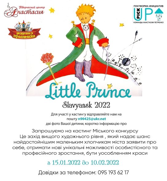 Главная Новости Славянска В Славянске состоится конкурс Little Prince Категория Новости Славянска Дата публикации 10 января 17:08, 2022 Кількість переглядів 7 В Славянске состоится конкурс Little Prince Інтернет-видання"Карачун" поширити у Facebook поширити у Telegram поширити у Twitter Анонс В Славянске состоится конкурс Little Prince. К участию приглашаются мальчики от 4 до 11 лет. Больше новостей Категория Новости Славянска Дата публикации 09 июня 17:15, 2023 Вниманию читателей интернет-издания «Карачун» Категория Новости Славянска Дата публикации 09 июня 11:03, 2023 Какие банковские отделения и банкоматы на сегодня работают в Славянске Категория Новости Славянска Дата публикации 09 июня 10:06, 2023 Завтра починає діяти літній графік руху поїздів по станції Слов’янськ Категория Новости Славянска Дата публикации 08 июня 15:19, 2023 Робота у Слов'янську: список вакансій Категория Новости Славянска Дата публикации 08 июня 09:57, 2023 Жителька Слов'янська підозрюється у коригуванні вогню по місцях дислокації ЗСУ у місті Категория Новости Славянска Дата публикации 07 июня 17:10, 2023 Суд по делу Нели Штепы отложили на неизвестный срок Категория Новости Славянска Дата публикации 07 июня 16:17, 2023 У Слов’янську водій BMW пропонував 400 доларів поліцейським: ймовірно, був напідпитку Категория Новости Славянска Дата публикации 07 июня 13:53, 2023 Концентрація аміаку у Слов’янську: військова адміністрація повідомила результати проб повітря Категория Новости Славянска Дата публикации 07 июня 13:19, 2023 У Слов’янську збільшується кількість рейсів тролейбусів Категория Новости Славянска Дата публикации 05 июня 11:56, 2023 В автопарке Славянска пополнение
