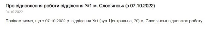 Главная Новости Славянска В Славянске откроется ещё одно отделение Новой почты Категория Новости Славянска Дата публикации 04 октября 13:07, 2022 В Славянске откроется ещё одно отделение Новой почты Інтернет-видання"Карачун" поширити у Facebook поширити у Telegram поширити у Twitter Жизнь в городе восстанавливается В компании "Новая почта" сообщают, что 7 октября в Славянске возобновит работу отделение №1.Это отделение расположено на улице Центральной, 70 – напротив автовокзала. Больше новостей Категория Новости Славянска Дата публикации 09 июня 17:15, 2023 Вниманию читателей интернет-издания «Карачун» Категория Новости Славянска Дата публикации 09 июня 11:03, 2023 Какие банковские отделения и банкоматы на сегодня работают в Славянске Категория Новости Славянска Дата публикации 09 июня 10:06, 2023 Завтра починає діяти літній графік руху поїздів по станції Слов’янськ Категория Новости Славянска Дата публикации 08 июня 15:19, 2023 Робота у Слов'янську: список вакансій Категория Новости Славянска Дата публикации 08 июня 09:57, 2023 Жителька Слов'янська підозрюється у коригуванні вогню по місцях дислокації ЗСУ у місті Категория Новости Славянска Дата публикации 07 июня 17:10, 2023 Суд по делу Нели Штепы отложили на неизвестный срок Категория Новости Славянска Дата публикации 07 июня 16:17, 2023 У Слов’янську водій BMW пропонував 400 доларів поліцейським: ймовірно, був напідпитку Категория Новости Славянска Дата публикации 07 июня 13:53, 2023 Концентрація аміаку у Слов’янську: військова адміністрація повідомила результати проб повітря Категория Новости Славянска Дата публикации 07 июня 13:19, 2023 У Слов’янську збільшується кількість рейсів тролейбусів Категория Новости Славянска Дата публикации 05 июня 11:56, 2023 В автопарке Славянска пополнение