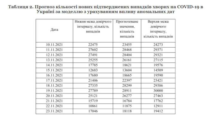 По этому прогнозу, в Украине 11-12 ноября число новых случаев коронавируса может превысить отметку в 28 тысяч, к выходным количество заражений уменьшится до 13-18 тысяч. Но уже на следующей неделе ожидается новый скачок. При этом к следующей пятнице, 19 ноября, число новых случаев может достигнуть отметки в 30 тысяч.
