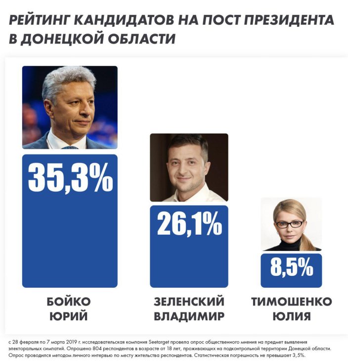 Юрий Бойко занимает первое место в президентском рейтинге по Донецкой области с отрывом почти на 10% от ближайшего соперника – Владимира Зеленского.