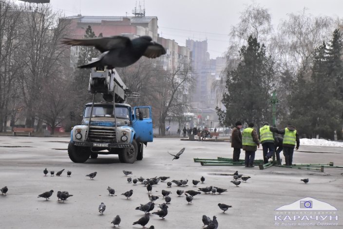 егодня утром сотрудники коммунальных служб города приступили к монтажу новогодней ёлки на Соборной площади.