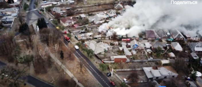 "Пожар в районе памятника Шевченко, на месте работают пожарные и спасатели", – написал автор видео.