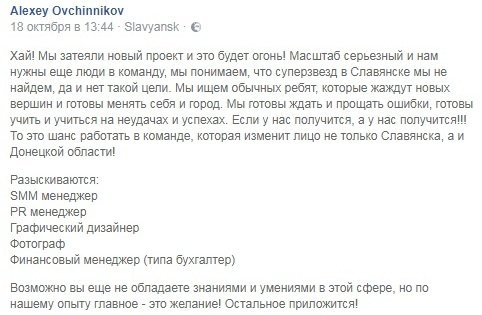 Общественная организация в Славянске ищет сотрудников