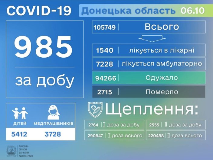Головна Новини Словʼянська Почти 1000 новых случаев: коронавирус в Донецкой области Категорія Новини Словʼянська Дата публікації 07 жовтня 10:17, 2021 Кількість переглядів 10 Почти 1000 новых случаев: коронавирус в Донецкой области Інтернет-видання"Карачун" поширити у Facebook поширити у Telegram поширити у Twitter Статистика Председатель Донецкой ОГА Павел Кириленко сообщает, что за минувшие сутки коронавирус забрал жизни 13 жителей Донецкой области.Также за 6 октября было обнаружено 958 новых случаев заболеваний.Детальнее – в инфографике: Більше новин Категорія Новини Словʼянська Дата публікації 02 листопада 10:28 У Слов'янську прильоти і руйнування Категорія Новини Словʼянська Дата публікації 01 листопада 16:05 Обстріл Слов'янська: наслідки на ранок 1 листопада Категорія Новини Словʼянська Дата публікації 31 жовтня 10:11 Проблеми з напругою: які наслідки для мешканців Слов'янська Категорія Новини Словʼянська Дата публікації 31 жовтня 10:03 На Слов'янськ скинули КАБи: наслідки Категорія Новини Словʼянська Дата публікації 30 жовтня 10:00 У Слов’янську повідомляють про вибухи Категорія Новини Словʼянська Дата публікації 29 жовтня 10:06 У Слов'янську під ударом був центр міста Категорія Новини Словʼянська Дата публікації 27 жовтня 17:30 Увечері 26 жовтня Слов'янськ знову був під обстрілом: наслідки Категорія Новини Словʼянська Дата публікації 26 жовтня 12:35 Росіяни атакували центр Слов’янська: є пошкодження Категорія Новини Словʼянська Дата публікації 20 жовтня 09:34 Вночі Слов'янськ був під обстрілом: подробиці Категорія Новини Словʼянська Дата публікації 15 жовтня 09:57 У Слов'янську під удар потрапила одна зі шкіл