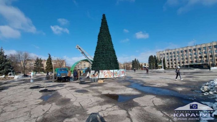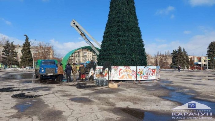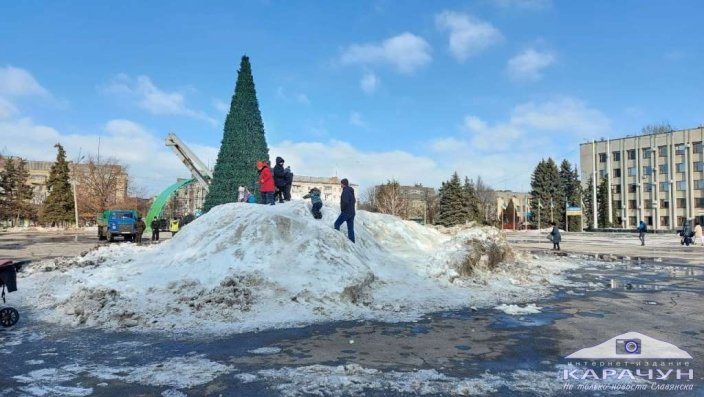 В эти минуты в Славянске идет демонтаж главной ёлки на Соборной площади.