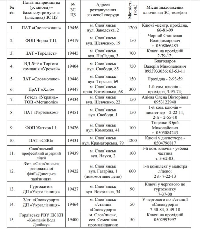 В связи с нестабильной ситуацией в стране публикуем перечень защитных сооружений, которые работают в Славянске.