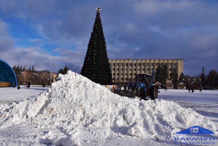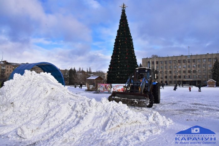 Сегодня на Соборной площади в Славянске тракторист соорудил для детворы снежную горку.