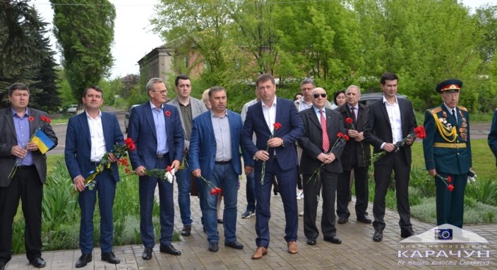 Побывала делегация у памятника воинам – бывшим работникам Славянского машиностроительного и Содового заводов. Депутат городского совета, генеральный директор Славянского машиностроительного завода Павел Придворов рассказывал: