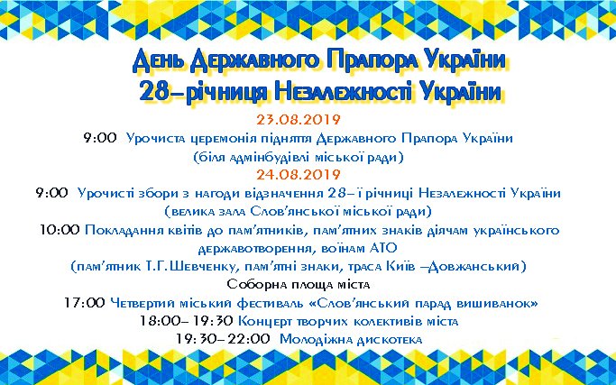 Головна Новини Словʼянська Как Славянск отпразднует День Независимости: АФИША Категорія Новини Словʼянська Дата публікації 19 серпня 14:35, 2019 Кількість переглядів 6 Как Славянск отпразднует День Независимости: АФИША Інтернет-видання"Карачун" поширити у Facebook поширити у Telegram поширити у Twitter Что запланировано? Сегодня на сайте Славянского городского совета появилась афиша мероприятий, приуроченных ко Дню флага и 28 годовщине Независимости Украины: Більше новин Категорія Новини Словʼянська Дата публікації 11:29 Обстріл Слов'янська 18 грудня: які пошкодження Категорія Новини Словʼянська Дата публікації 18 грудня 10:35 У Слов’янську попрощалися з загиблим сержантом Дмитром Щербиною Категорія Новини Словʼянська Дата публікації 17 грудня 10:22 Слов'янськ обстріляли з РСЗО Категорія Новини Словʼянська Дата публікації 15 грудня 11:34 Мер Львова побував у Слов’янську Категорія Новини Словʼянська Дата публікації 12 грудня 10:18 Обстріл Слов'янська: пошкоджено адміністративні приміщення та їдальню Категорія Новини Словʼянська Дата публікації 11 грудня 11:33 Вночі росіяни обстріляли Слов’янськ Категорія Новини Словʼянська Дата публікації 07 грудня 14:10 Після обстрілу в Слов’янську є поранені та загибла Категорія Новини Словʼянська Дата публікації 05 грудня 11:32 Удари по Слов'янську: ввечері в місті чули вибухи. Наслідки Категорія Новини Словʼянська Дата публікації 04 грудня 09:43 ⚡️ Ранкові фото з місця вчорашнього обстрілу в Слов’янську Категорія Новини Словʼянська Дата публікації 03 грудня 20:38 9 КАБів по Слов'янську: Лях розповів про стан поранених дітей