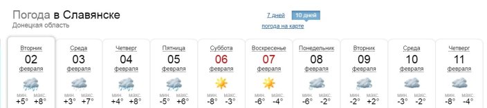 В Славянске же снег обещают на понедельник 8 февраля.