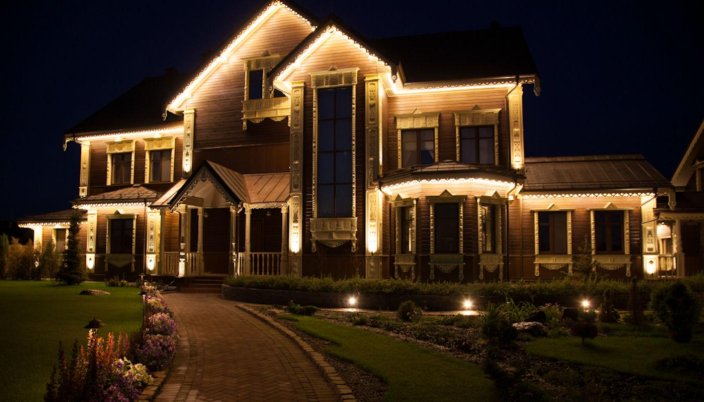 Ландшафтное освещение применяется для подсветки садов, парков, спортивных и детских площадок и т.д., а в случае загородного дома — приусадебного участка. Количество светильников, их тип и мощность подбираются в соответствии с площадью и функциональным назначением освещаемой территории.