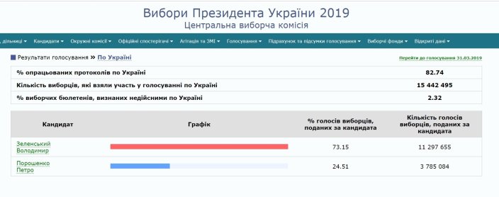 Головна Новини України Обработано 82,74%: какие результаты по Украине? Категорія Новини України Дата публікації 22 квітня 06:48, 2019 Кількість переглядів 6 Обработано 82,74%: какие результаты по Украине? Інтернет-видання"Карачун" поширити у Facebook поширити у Telegram поширити у Twitter Много испорченных бюллетеней... По состоянию на 06:45 в Украине обработаны 82,74% бюллетеней.Владимир Зеленский набирает 73,15% голосов, Петр Порошенко – 24,51%. Більше новин Категорія Новини України Дата публікації 04 листопада 11:29 Єврокомісія вимагатиме від України повернутись до антикорупційного курсу та посилити верховенство права — Reuters Категорія Новини України Дата публікації 03 листопада 11:32 Трамп вважає, що зможе добитися завершення війни РФ проти України Категорія Новини України Дата публікації 03 листопада 11:29 Субсидія на комунальні послуги: хто може оформити Категорія Новини України Дата публікації 30 жовтня 11:06 По всій Україні для побутових споживачів скасували погодинне вимкнення світла Категорія Новини України Дата публікації 30 жовтня 10:11 «Обидві сторони застрягли в боротьбі»: Трамп і Сі Цзіньпін обговорили війну РФ проти України Категорія Новини України Дата публікації 29 жовтня 09:59 Допомога ВПО: яким буде розмір виплат у листопаді Категорія Новини України Дата публікації 28 жовтня 11:30 Оформлення відстрочки: що зміниться з 1 листопада Категорія Новини України Дата публікації 27 жовтня 20:41 Справу щодо голови АМКУ Кириленка та його дружини скерували до суду Категорія Новини України Дата публікації 27 жовтня 10:01 В Україні знову аварійні відключення електроенергії Категорія Новини України Дата публікації 25 жовтня 11:58 Трамп планує обговорити війну в Україні з Сі