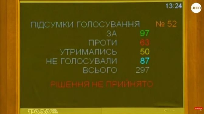 Против решения проголосовало 63 нардепа, "за" – 97. Еще 50 нардепов воздержались от голосования.