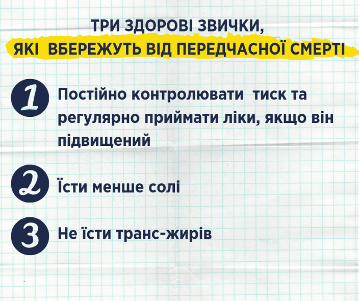 Контроль давления, уменьшение в употребление количества соли и отказ от транс-жиров помогут прожить дольше. В этом уверена исполняющая обязанности министра здравоохранения Ульяна Супрун.