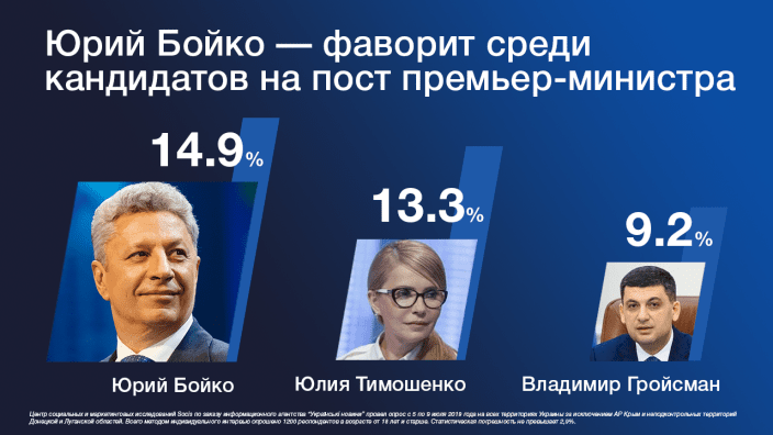 Согласно данным соцопроса, если бы была возможность выбрать премьер-министра, 14,9% респондентов выбрали бы Юрия Бойко.